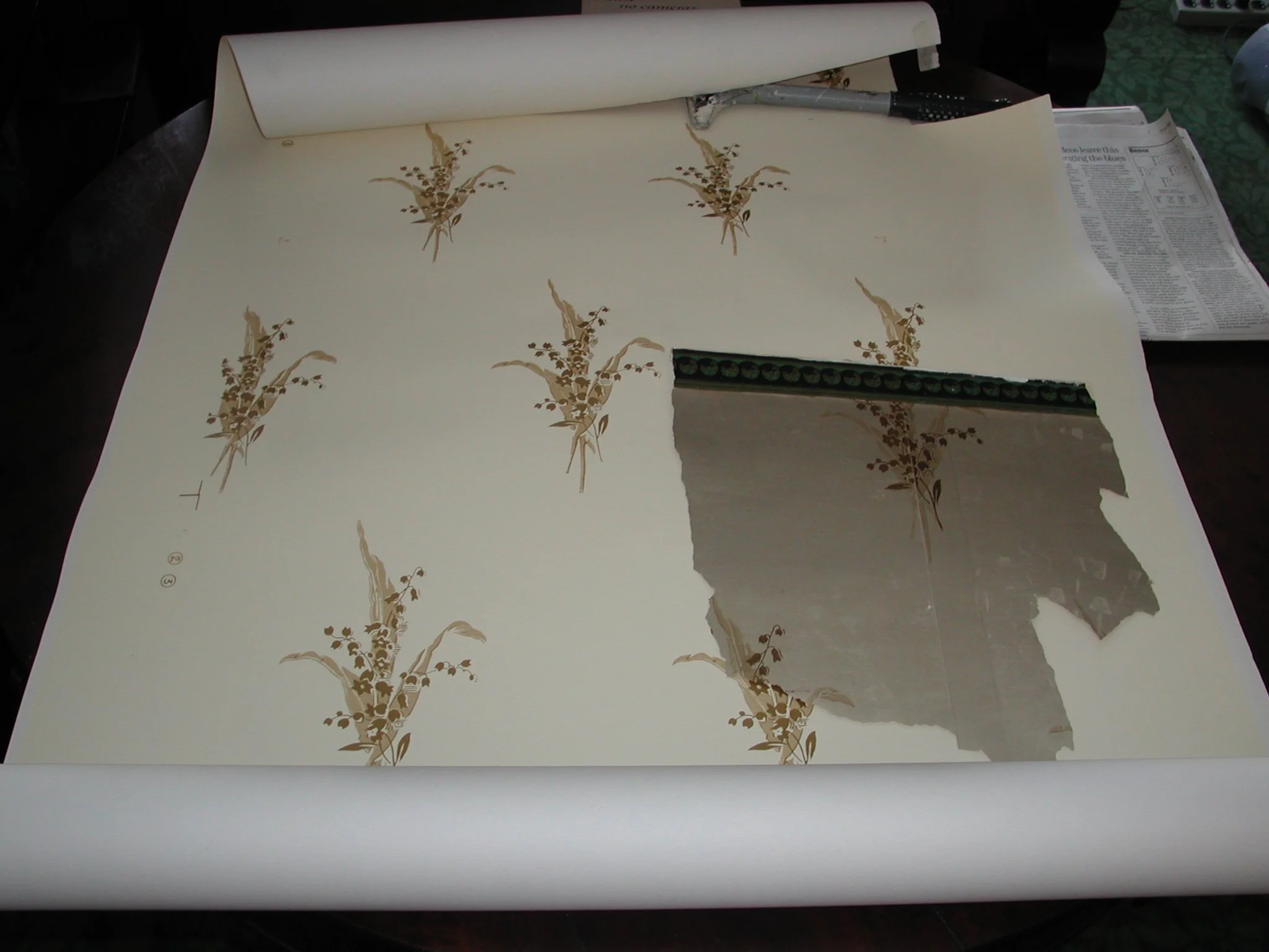 One of the bedrooms after repapering. This paper, also, was reproduced to match the pre-existing.
